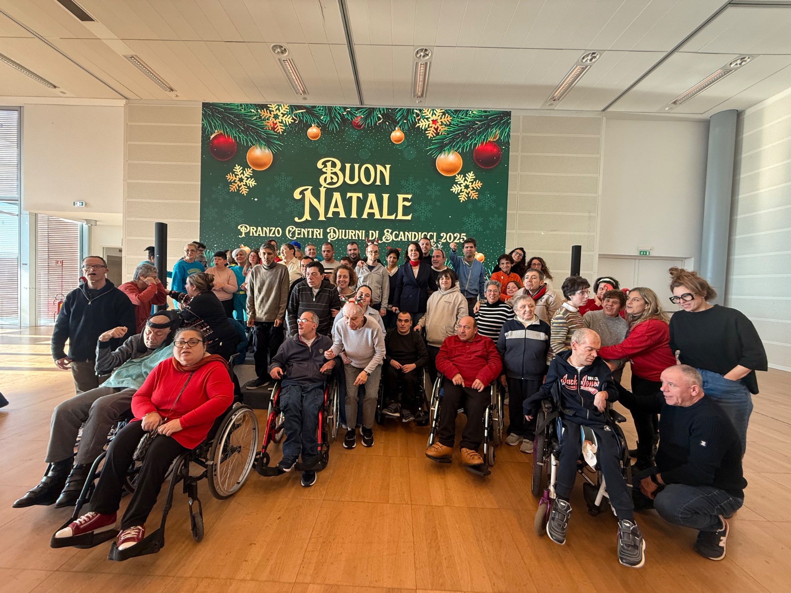 Momento di festa oggi, venerdì 12 dicembre, all'auditorium di piazzale della Resistenza, che ha ospitato circa 150 persone per il pranzo di Natale con tutti i ragazzi che frequentano i centri diurni per disabili del territorio di Scandicci. Presenti anche le famiglie dei giovani, e i ragazzi di Casa Humanitas e di Casa Viola, oltre alle assistenti sociali del Comune di Scandicci e della Società della Salute nord ovest. Per l'Amministrazione hanno preso parte la sindaca Claudia Sereni e il vicesindaco con delega al sociale Yuna Kashi Zadeh.