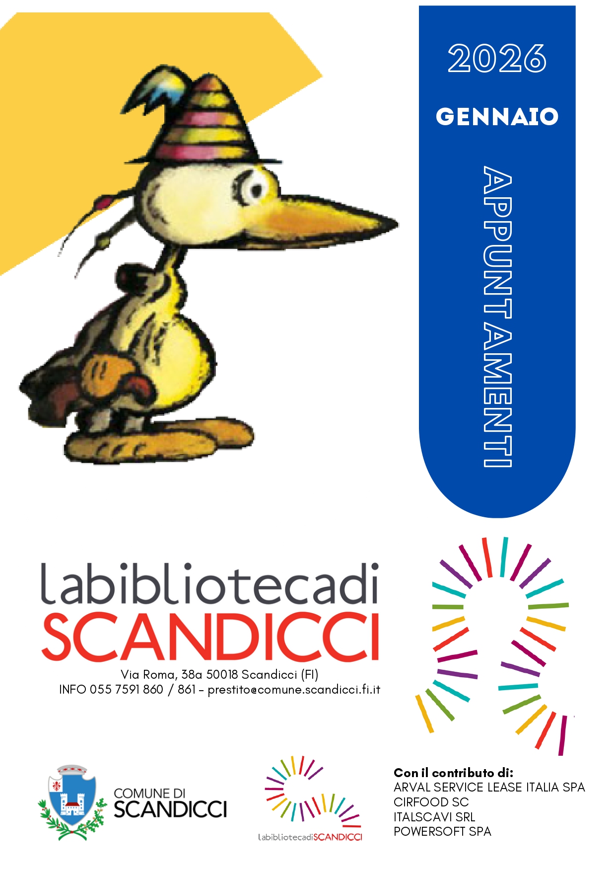 Si informa che dal 18 al 27 gennaio 2026 compresi, a causa di un importante aggiornamento del gestionale del sistema documentario integrato dell'area fiorentina, i programmi di gestione di prestito/restituzione e catalogazione presso la Biblioteca di Scandicci saranno sospesi. Prestiti e restituzioni ripartiranno dopo il 27 gennaio, quando i servizi torneranno alla normalità.
