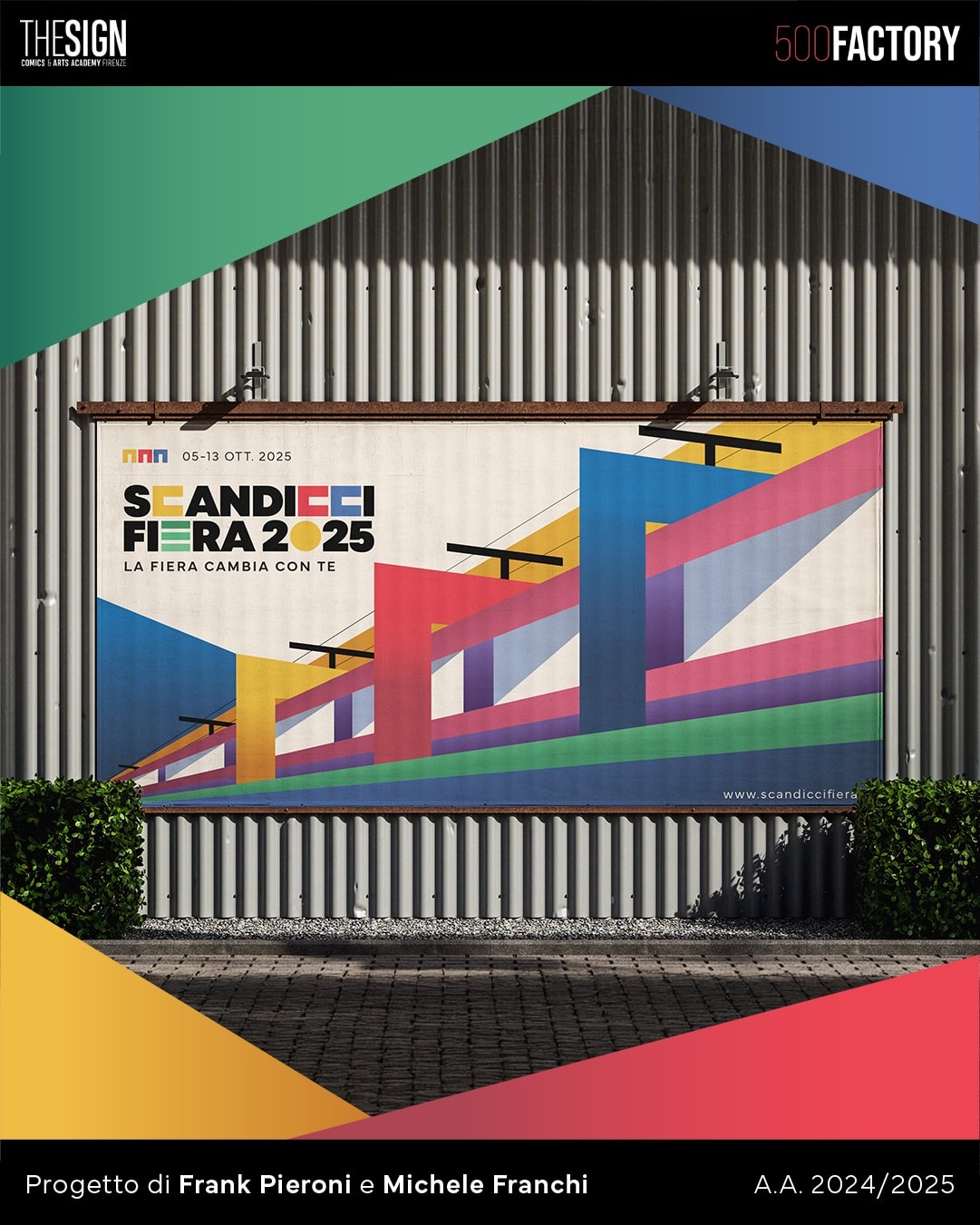 A ideare il nuovo logo sono stati Frank Pieroni e Michele Franchi, studenti del corso Graphic Design 2, coordinato da Clarissa Trianni. Il risultato è un gioco visivo che parte dagli archi di Scandicci, trasformati nelle “C” che compongono il nome della città: un segno forte, essenziale e modulare, capace di rappresentare la Fiera come luogo di passaggio ma anche di incontro e di trasformazione. Il nuovo simbolo vuole concretizzarsi in una grafica "viva" e multiforme, in grado di raccontare e raccogliere in una visione comune tutte le anime che pulsano all'interno della Fiera. A guidare il processo creativo l’innovativa "500 Factory": l’agenzia di creativi in formazione di TheSign, coordinata dall’art director Francesco Carlucci, dove cinquecento giovani talenti esplorano le nuove frontiere del design e della comunicazione visiva.