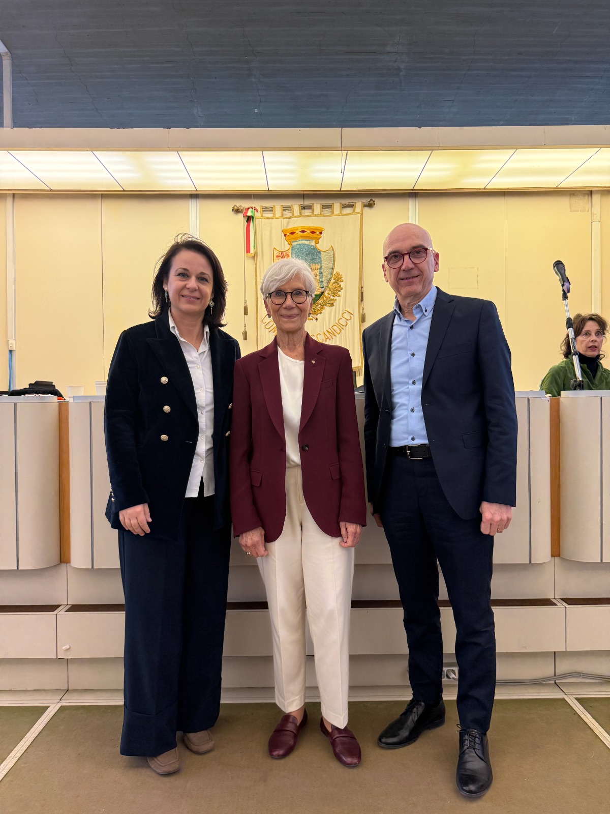 Presenti in aula anche tutte le donne di Scandicci che, dal 1946 a oggi, sono state elette nel consiglio comunale cittadino o comunque hanno ricoperto incarichi politici nell'amministrazione della città. A loro è stato consegnato un riconoscimento da parte del Comune.