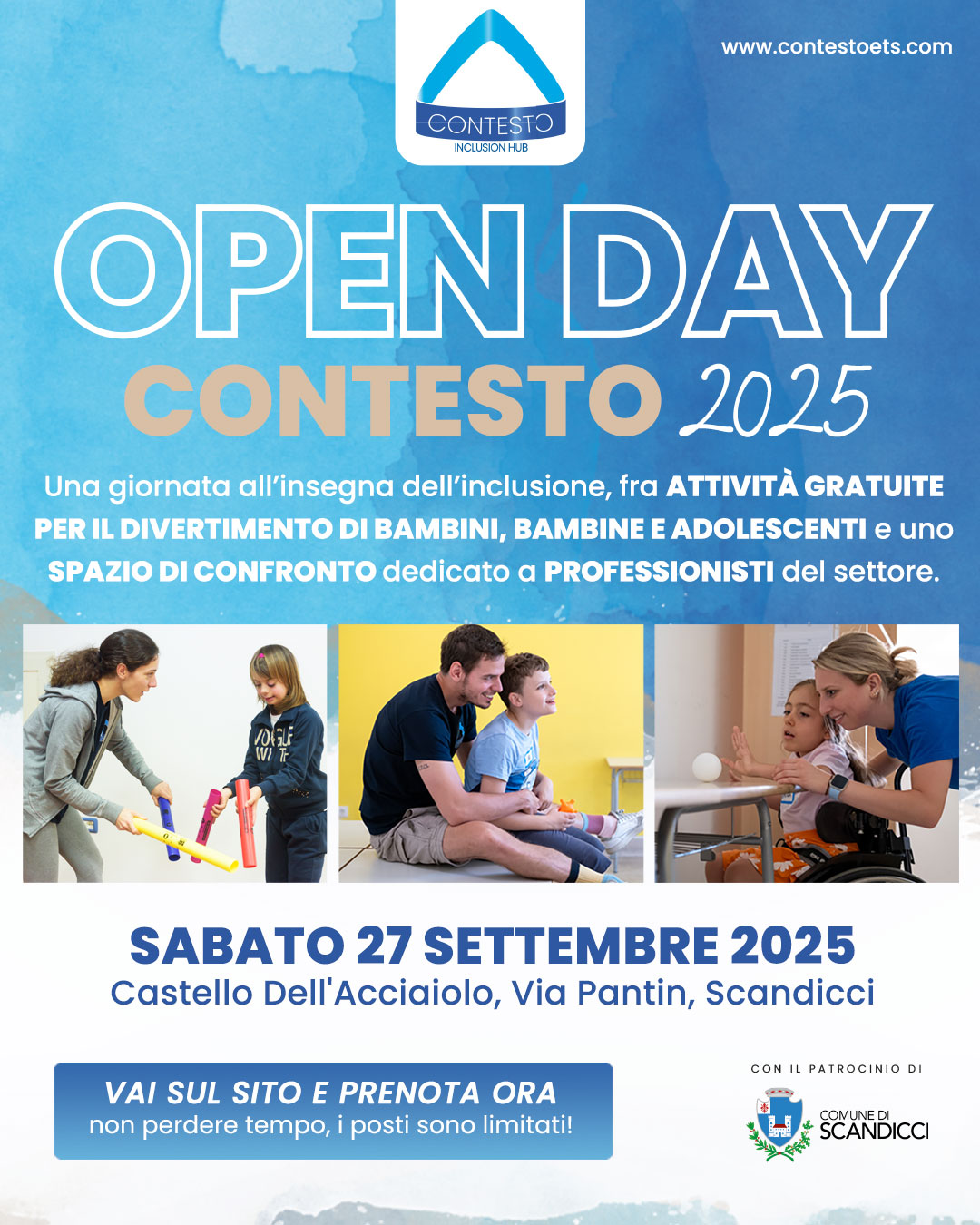 L’idea è quella di una giornata aperta alla comunità, con attività gratuite su prenotazione, per non lasciare il confronto e la divulgazione su questi temi solo alle famiglie di bambini con disabilità e a chi lavora in quest’ambito. Le prenotazioni sono aperte al link: www.contestoets.com/open-day-2025.