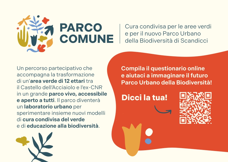 Il Comune di Scandicci, con il sostegno di Autorità Regionale per la Partecipazione – Regione Toscana, promuove un percorso di partecipazione che accompagna la realizzazione del Parco Urbano della Biodiversità, un progetto di trasformazione e valorizzazione di circa 12 ettari tra il Castello dell’Acciaiolo e l’ex-CNR. Il parco diventerà un laboratorio vivo e vissuto, dedicato alla ricerca, alla formazione, alla fruizione pubblica e alla partecipazione attiva, con l’obiettivo di integrare tutela ambientale, qualità urbana e cura condivisa