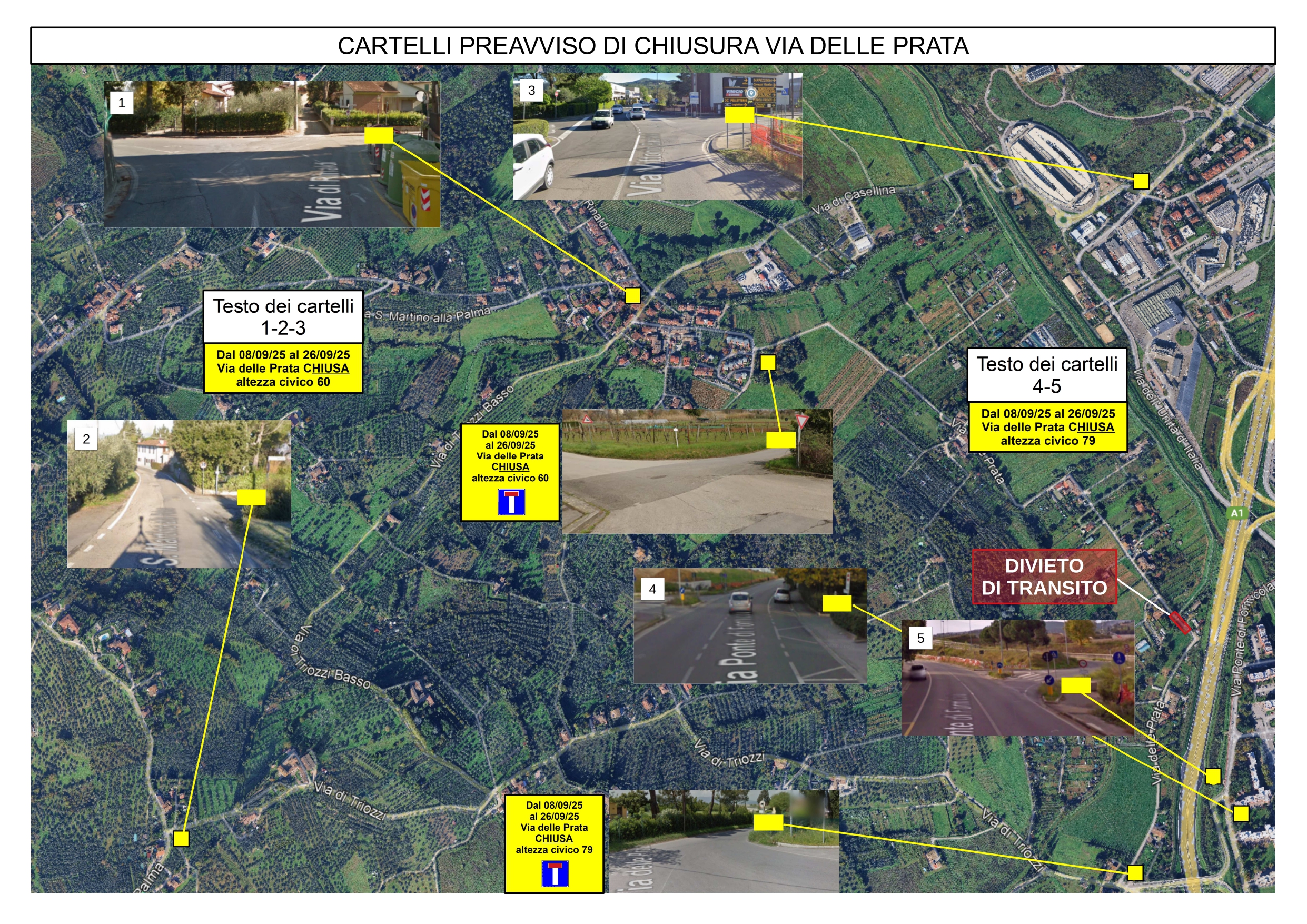 Via delle Prata resterà chiusa nel tratto compreso tra i numeri civici 60 e 79