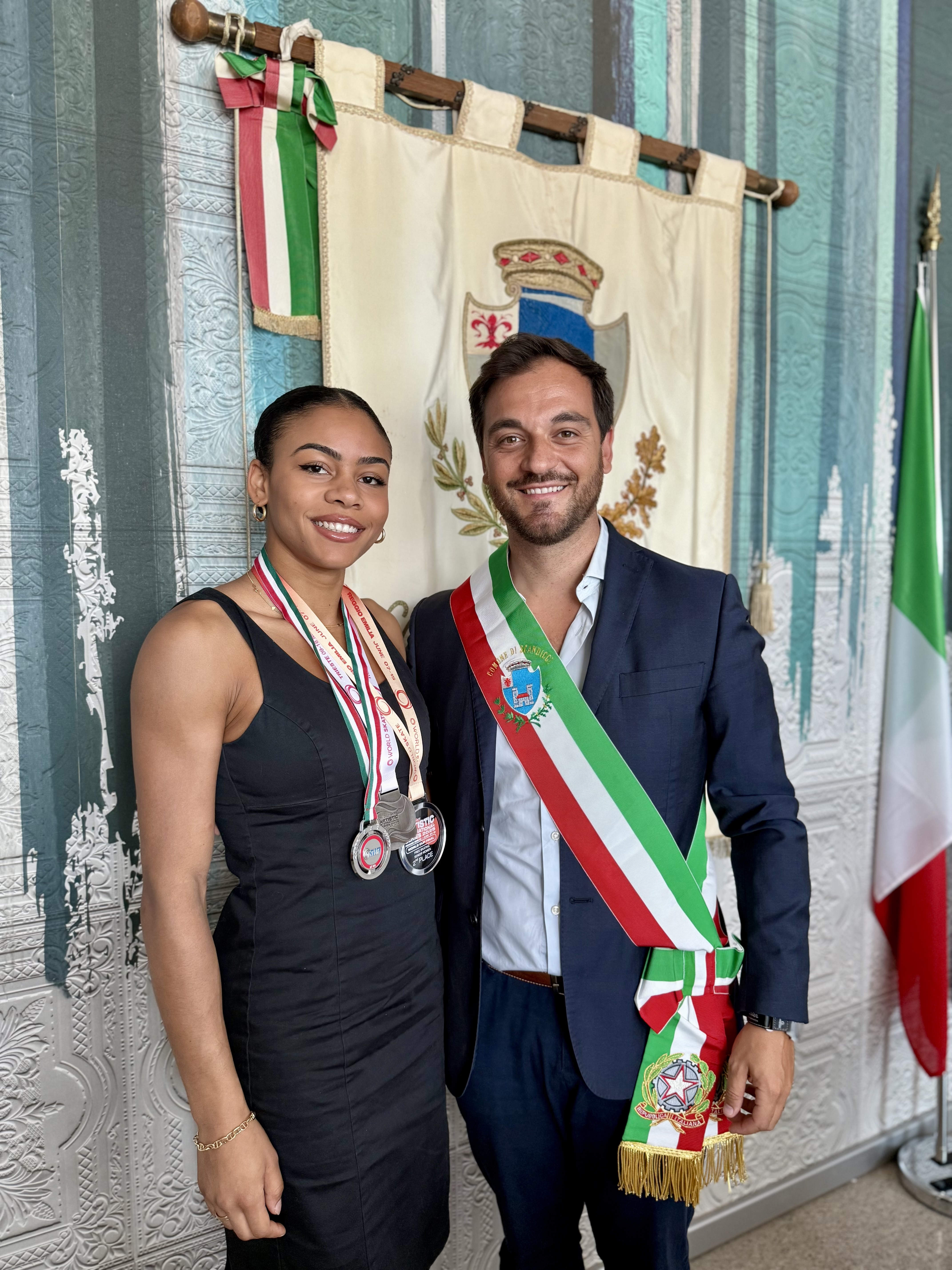 Ricevuta nel palazzo comunale dalla sindaca Claudia Sereni e dall’assessore allo sport Salvatore Saltarello l’atleta della Robur 1908 Pattinaggio Artistico Scandicci, Yenè Corinna Soro Bonati: medaglia d’argento nella massima categoria federale senior di pattinaggio artistico a rotelle specialità Freeskating alla finale di Coppa del Mondo AIS, Yenè ha appena portato a casa il titolo di Vicecampionessa agli Italiani FISR, che si sono svolti questo mese a Novara, dopo aver conquistato il titolo di Campionessa Regionale FISR ed essersi distinta nella semifinale di Coppa del Mondo AIS di Trieste lo scorso maggio, conquistando la medaglia d’argento. L’atleta pratica pattinaggio dall’età di sette anni e ha gareggiato per la Nazionale Italiana dal 2015 al 2019 e dal 2022 gareggia per la squadra Nazionale della Costa d’Avorio. Il prossimo ottobre parteciperà ai Campionati del Mondo WSG 2025 che si svolgeranno in Cina.